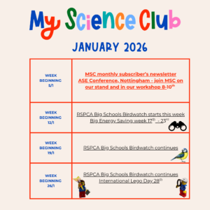 January sees the start of the RSPCA Big Schools Birdwatch, My Science Club are live at the ASE Conference and of course, Lego day which will undoubtedly feature Mini Paul and Mini Bry somewhere too!